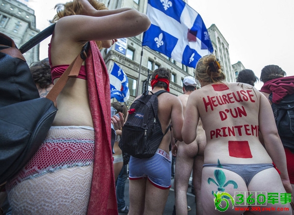 6月7日,加拿大蒙特利尔,赤裸的学生大游行,抗议学费上涨。