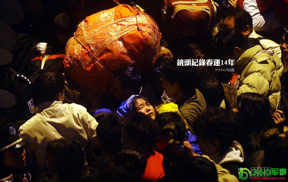 2008年1月下旬,南方暴雪给广州春运造成严重威胁,广州火车站近十万人滞留。图为拥挤的人群中,一名女孩仰面哭泣。