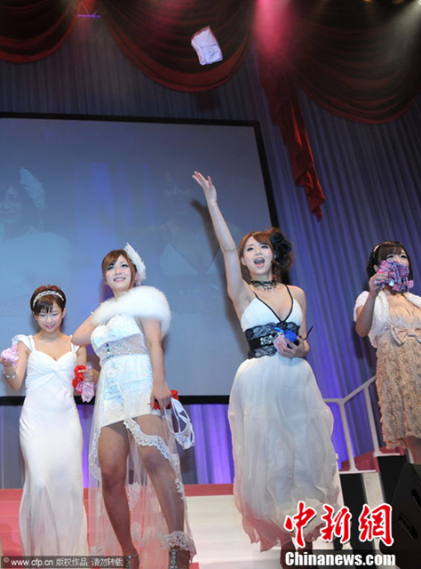 日本AV作品颁奖礼 众女优向观众抛内裤(1)(7)