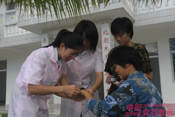 龚天琴为西沙女兵巡诊。