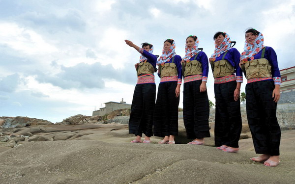 7月31日,虎豹关海防哨所的女民兵和惠安边防大队女兵一起进行海防前线的海空监控演练