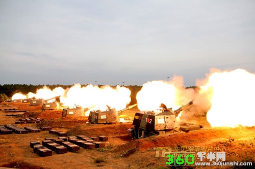 9月27日,南京军区某炮兵团紧贴实战要求,将部队拉到千里之外的野外某生疏地域,依托信息指挥系统,开展多课目、多方式、多射击手段的实兵实弹战术演练,检验部队多方式机动、高效指挥、精确打击能力。图为某新型加榴炮对集火“点”目标进行打击。